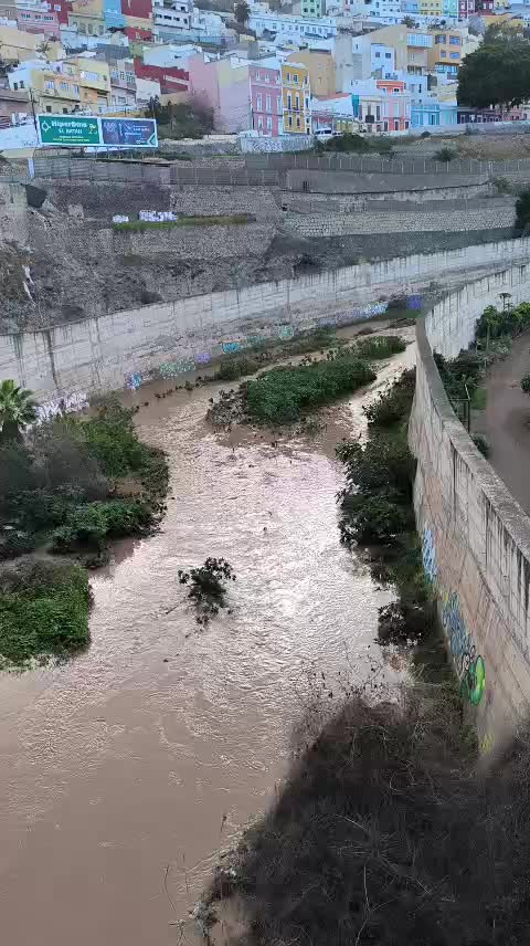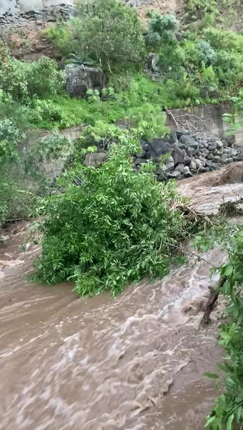 Therese, esa borrasca que nos ha traído lluvias intensas ha dejado múltiples artículos, fotografías y vídeos del correr del Guiniguada, entre otros barrancos insulares.